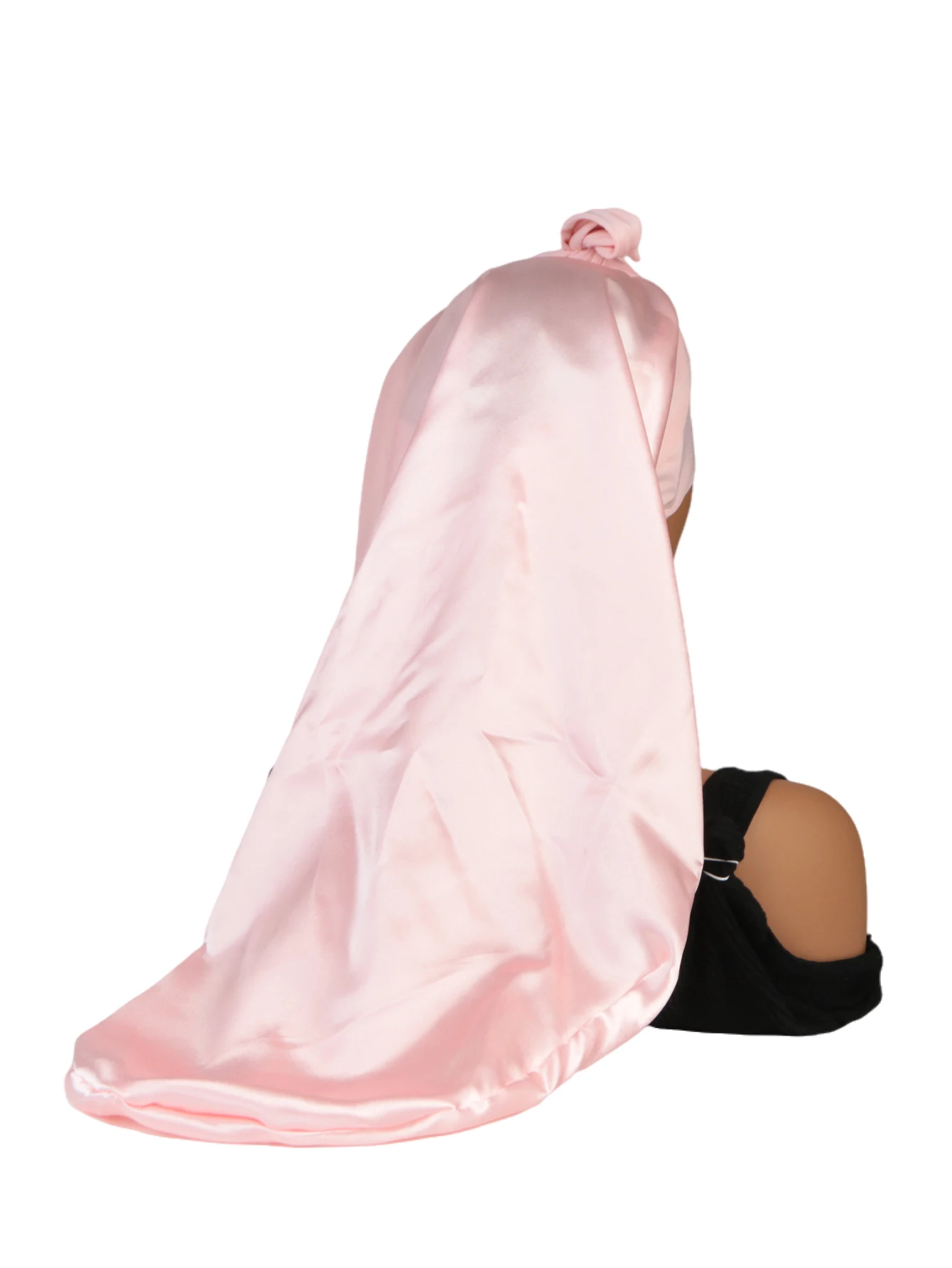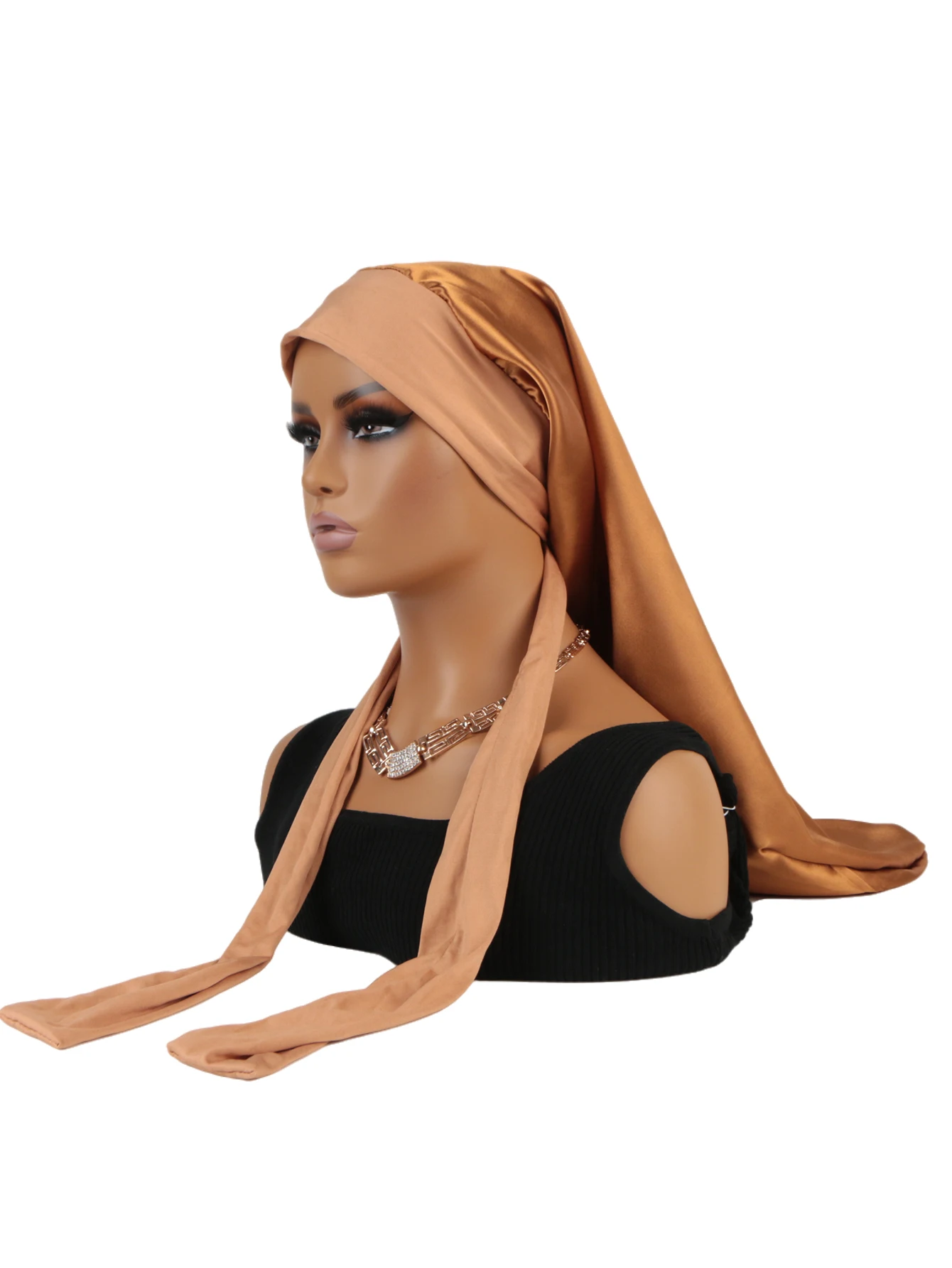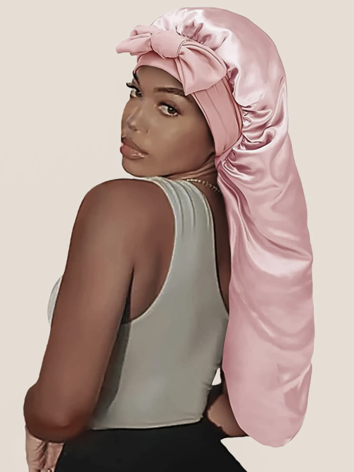 Women's Long Oversized Elastic Satin Bonnet Sleeping Cap with Ribbon - Breathable Turban Sleep Headwear Bandanas