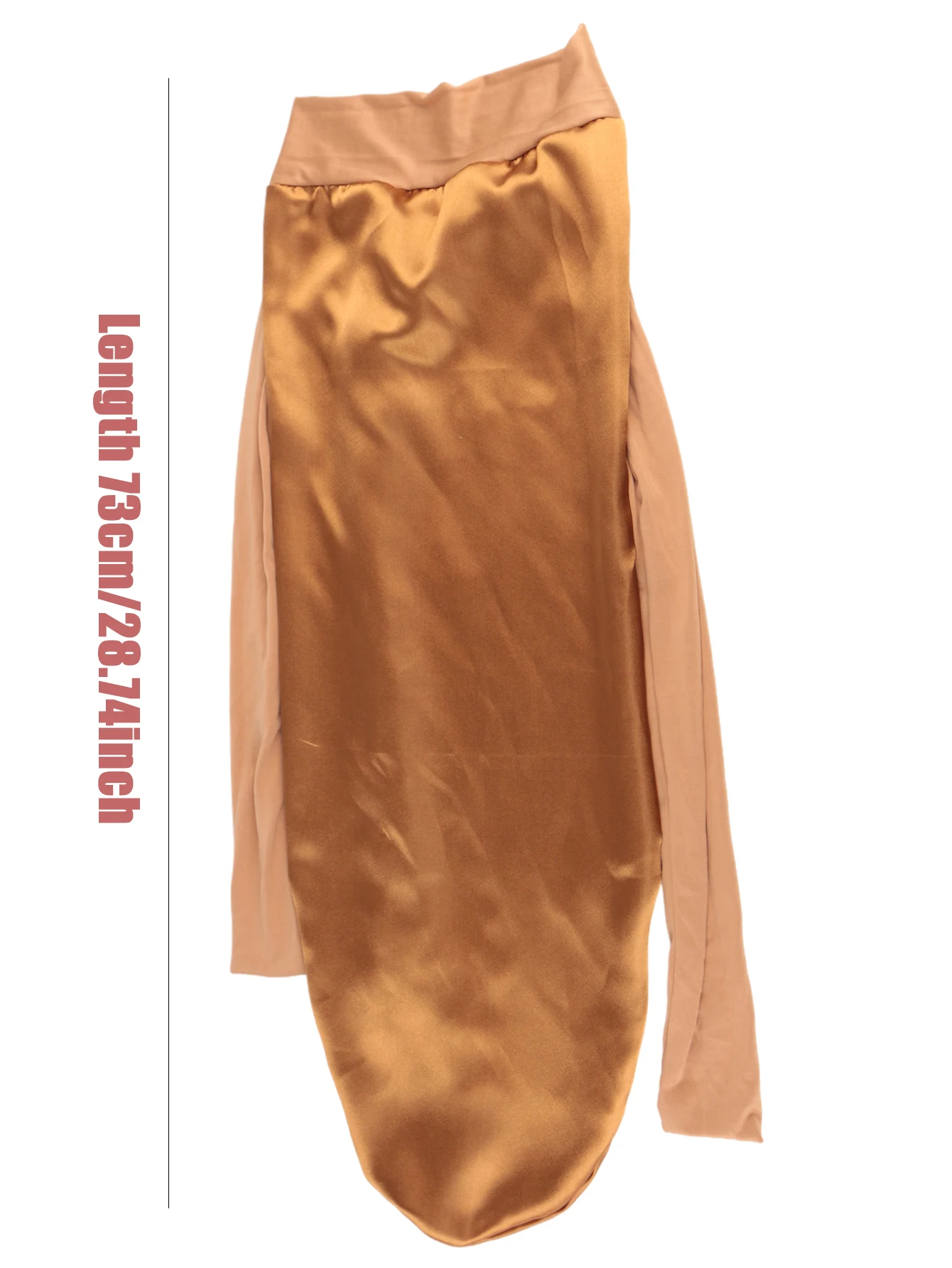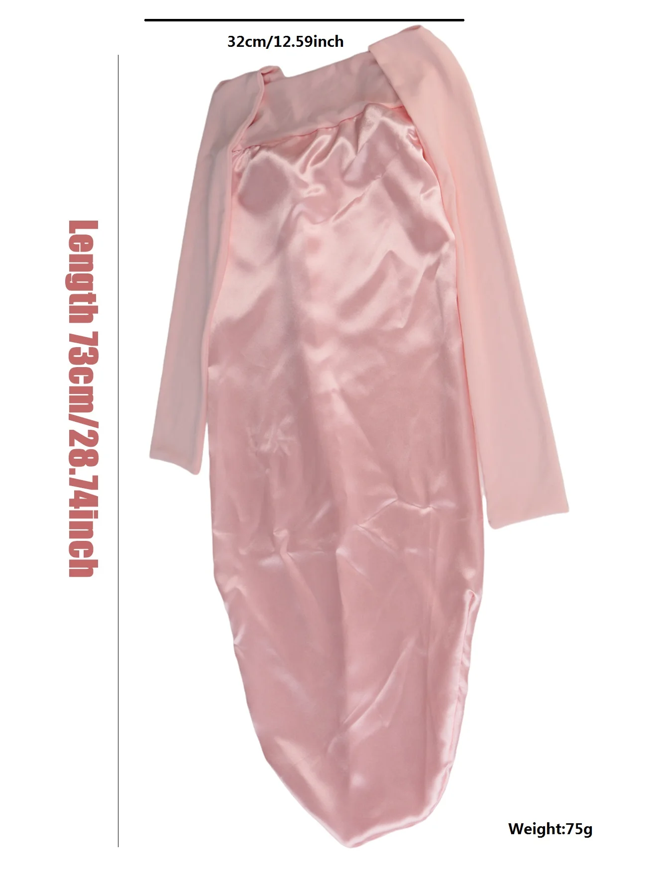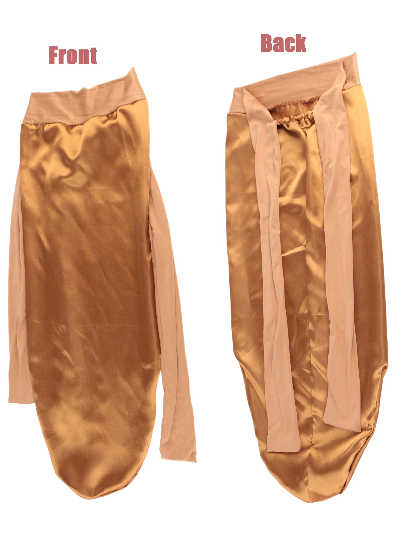 Women's Long Oversized Elastic Satin Bonnet Sleeping Cap with Ribbon - Breathable Turban Sleep Headwear Bandanas